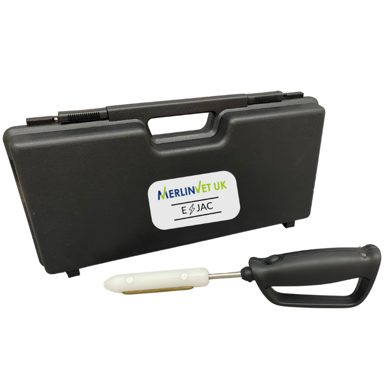 The MerlinVet E-JAC is a battery-operated self-contained electro-ejaculator designed for collecting semen from small ruminants. The E-JAC Ram Probe features: